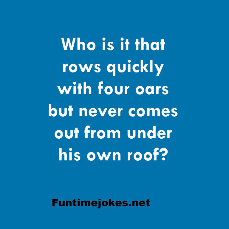 π Take the 15-Riddle Challenge (Win at 80%+)Who is it that rows quickly with four oars but never comes out from under his own roof?