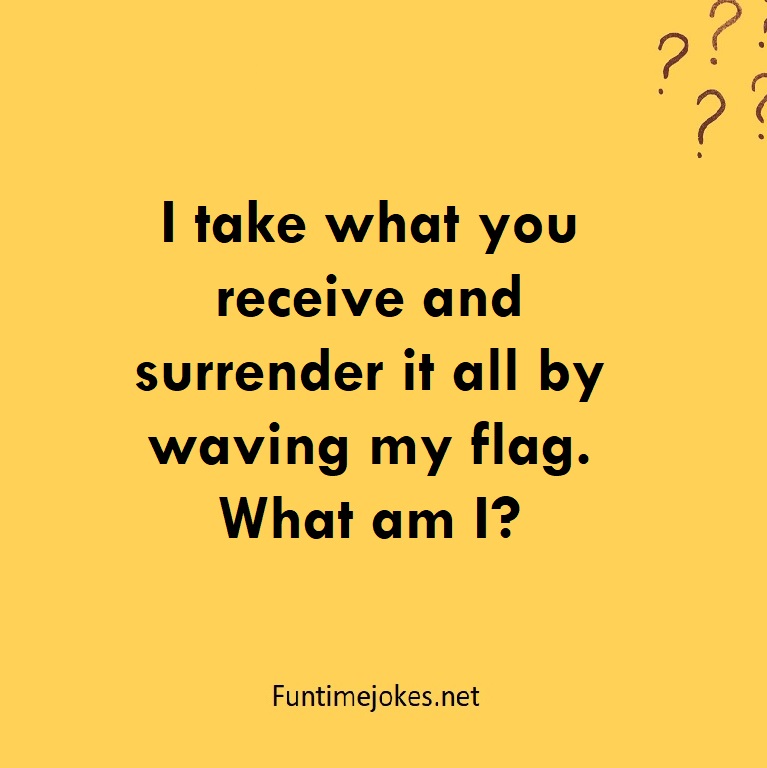 π Take the 15-Riddle Challenge (Win at 80%+)I take what you receive and surrender it all by waving my flag. What am I?