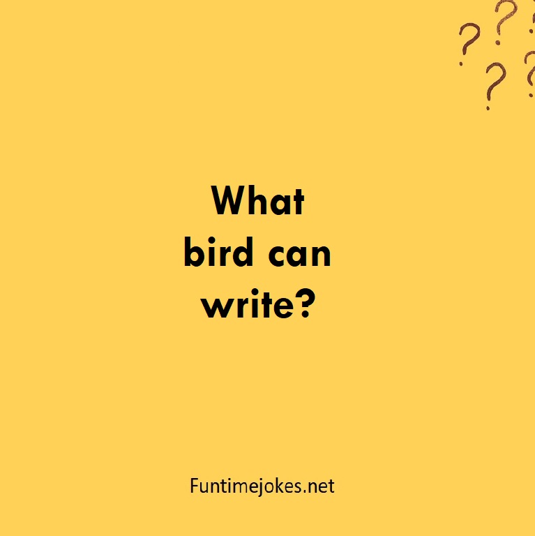 π Pop Balloon Riddles (Tap to reveal answers)What bird can write? is one of the best riddle of the day.We have best collections of riddles, You can see our best collection of Tricky Riddles with Answer