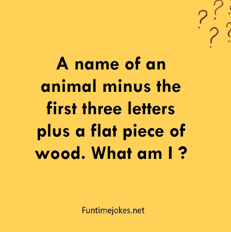π Take the 15-Riddle Challenge (Win at 80%+)A name of an animal minus the first three letters plus a flat piece of wood. What am I ?