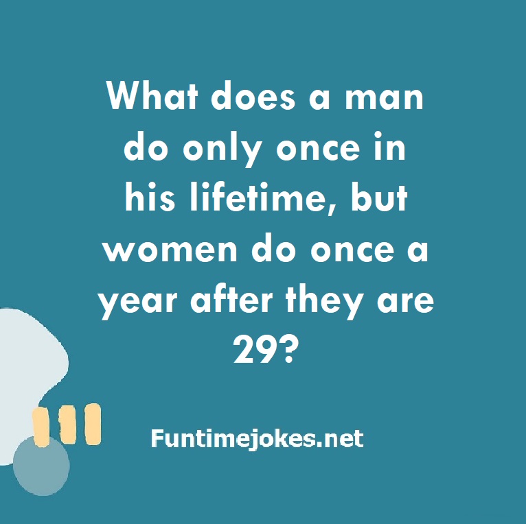 π Pop Balloon Riddles (Tap to reveal answers)What does a man do only once in his lifetime, but women do once a year after they are 29? is one of the best riddle of the day.We have best collections of riddles, You can see our best collection of Tricky Riddles with Answer