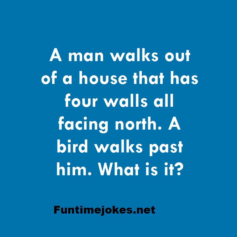 π Pop Balloon Riddles (Tap to reveal answers)A man walks out of a house that has four walls all facing north. A bird walks past him. What is it? is one of the best riddle of the day.We have best collections of riddles, You can see our best collection of Tricky Riddles with Answer