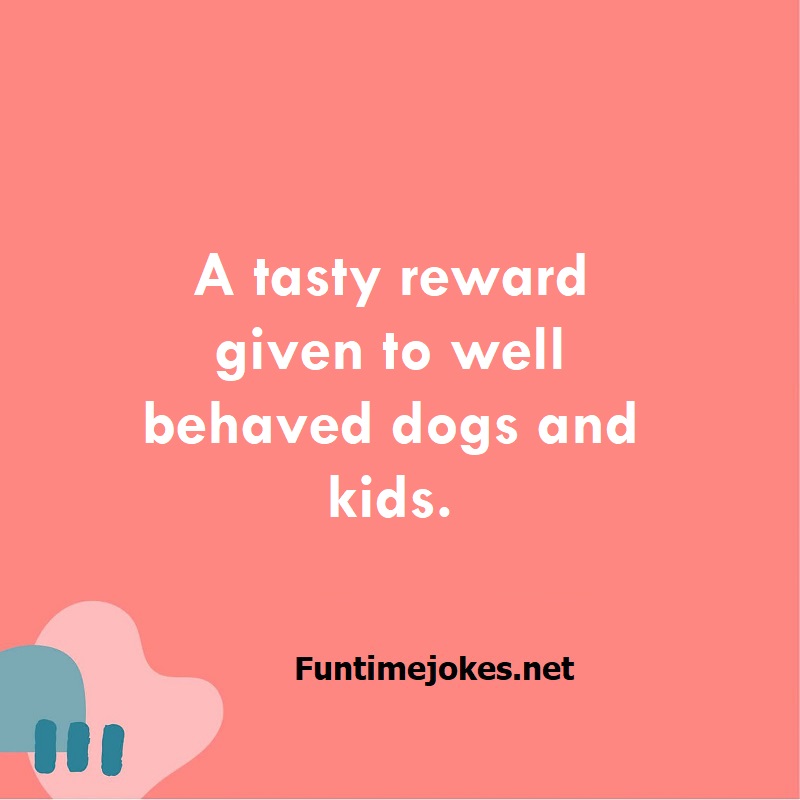 A tasty reward given to well behaved dogs and kids.What is the answer to the riddle and puzzle?