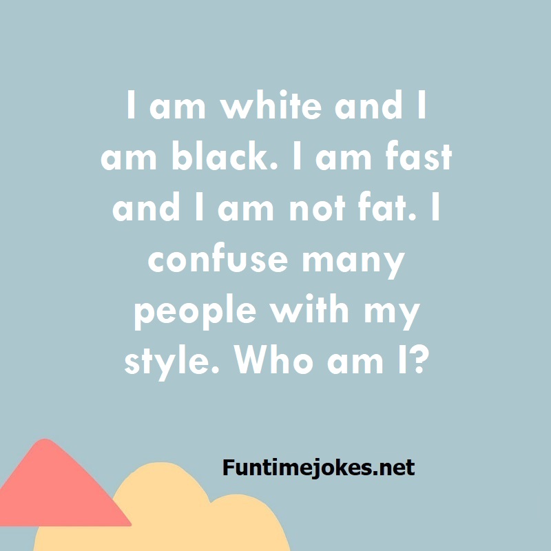 π Take the 15-Riddle Challenge (Win at 80%+)I am white and I am black. I am fast and I am not fat. I confuse many people with my style. Who am I?
