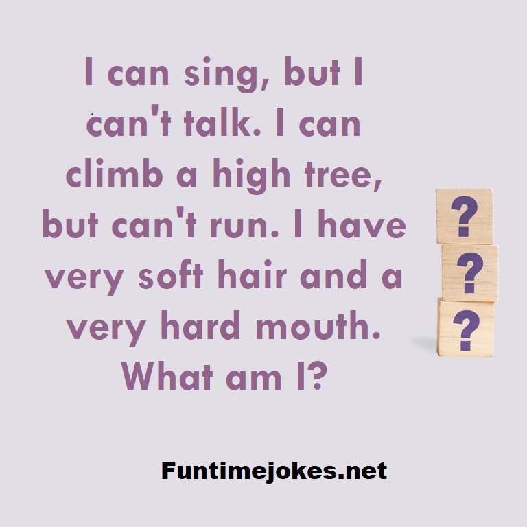 π Take the 15-Riddle Challenge (Win at 80%+)I can sing, but I can't talk. I can climb a high tree, but can't run. I have very soft hair and a very hard mouth. What am I?