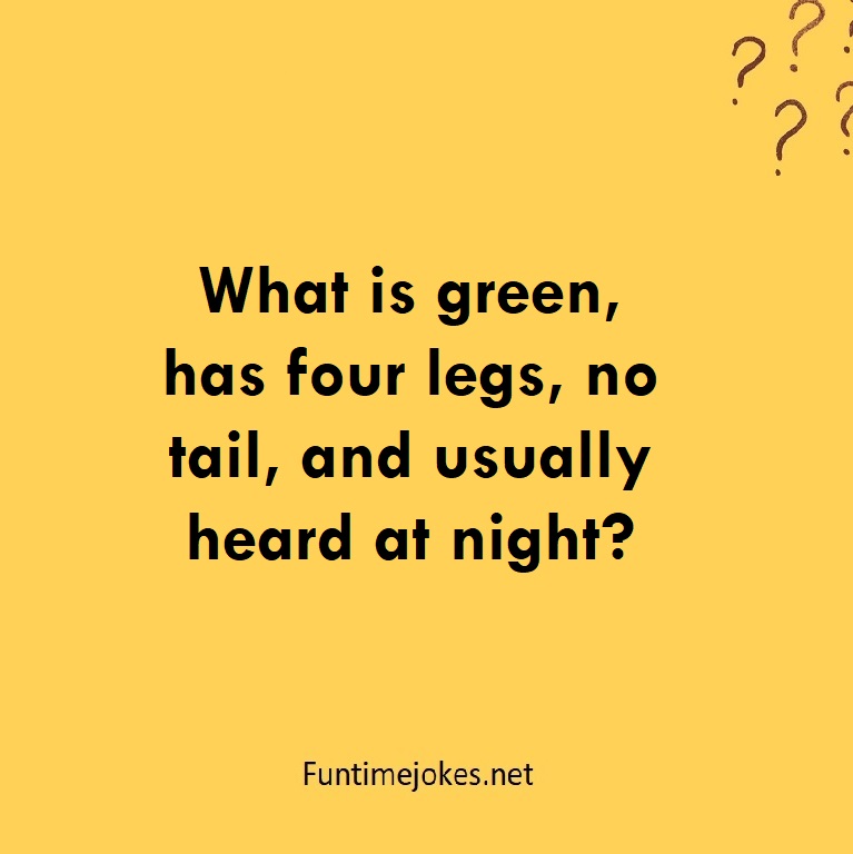 π Take the 15-Riddle Challenge (Win at 80%+)What is green, has four legs, no tail, and usually heard at night?