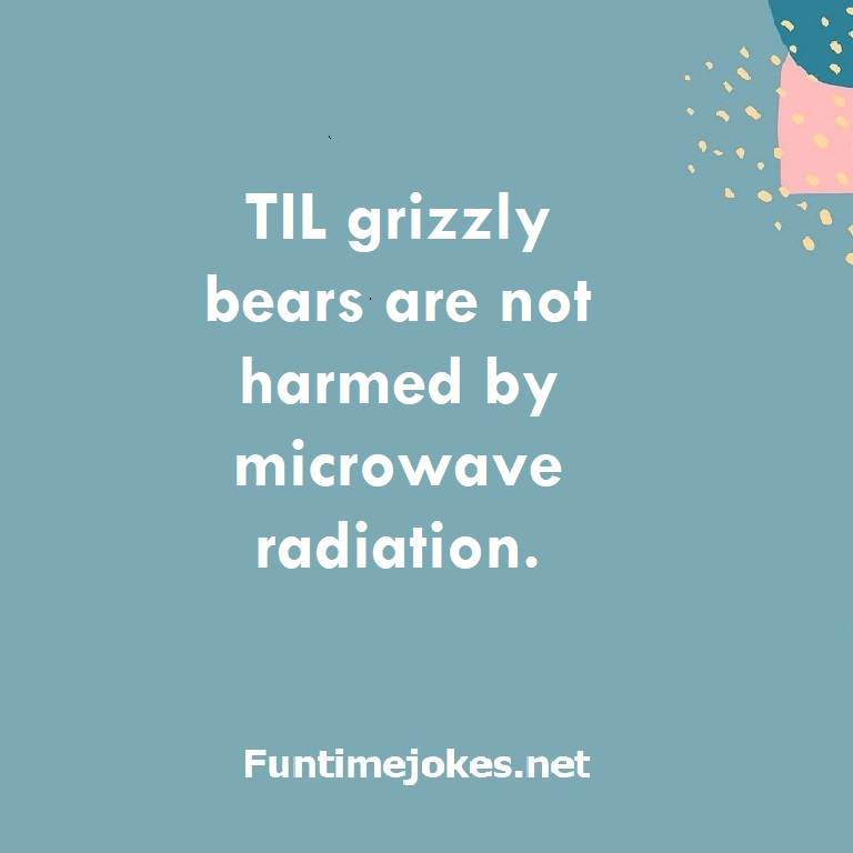 TIL grizzly bears are not harmed by microwave radiation. is one of the best riddle of the day.We have best collections of riddles, You can see our best collection of Tricky Riddles with Answer Funtimejokes be the be the world's most knowledge able riddle website on the internet for riddles, puzzles, rebus caps and quizzes. Our riddle library has interesting riddles and answers to riddles for adults and evoke deep thought and community discussion. Riddlers will benefit from the creativity of our members who participate in growth of our online riddles and puzzles resource. We encourage you to become a member of Riddles and receive daily/weekly free riddles email.