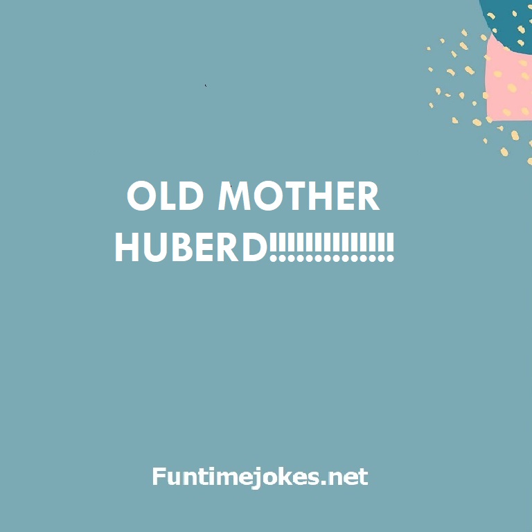 OLD MOTHER HUBERD!!!!!!!!!!!!!! is one of the best riddle of the day.We have best collections of riddles, You can see our best collection of Tricky Riddles with Answer Funtimejokes be the be the world's most knowledge able riddle website on the internet for riddles, puzzles, rebus caps and quizzes. Our riddle library has interesting riddles and answers to riddles for adults and evoke deep thought and community discussion. Riddlers will benefit from the creativity of our members who participate in growth of our online riddles and puzzles resource. We encourage you to become a member of Riddles and receive daily/weekly free riddles email.