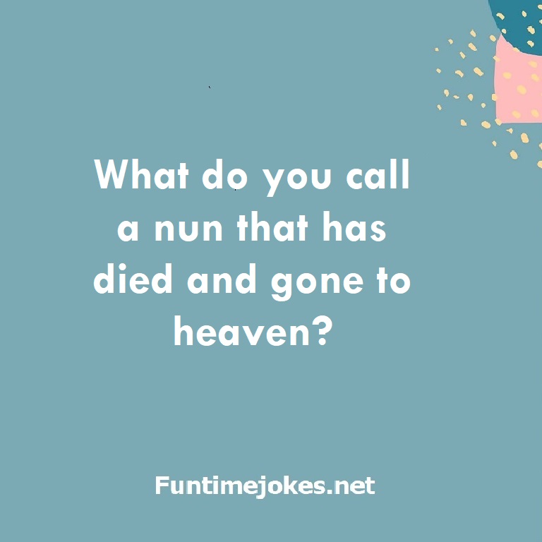 π Take the 15-Riddle Challenge (Win at 80%+)What do you call a nun that has died and gone to heaven?
