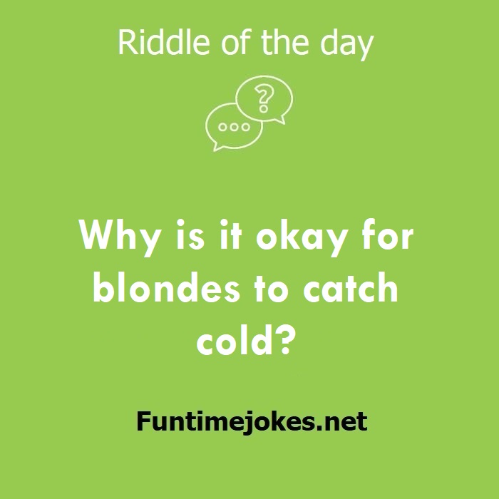 π Take the 15-Riddle Challenge (Win at 80%+)Why is it okay for blondes to catch cold?
