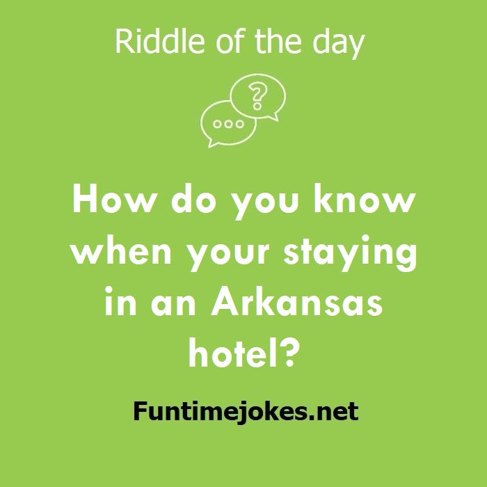 We encourage you to subscribe us to receive our Daily/Weekly riddles newsletter. How do you know when your staying in an Arkansas hotel? is one of the best riddle of the day.We have best collections of riddles, You can see our best collection of Tricky Riddles with Answer