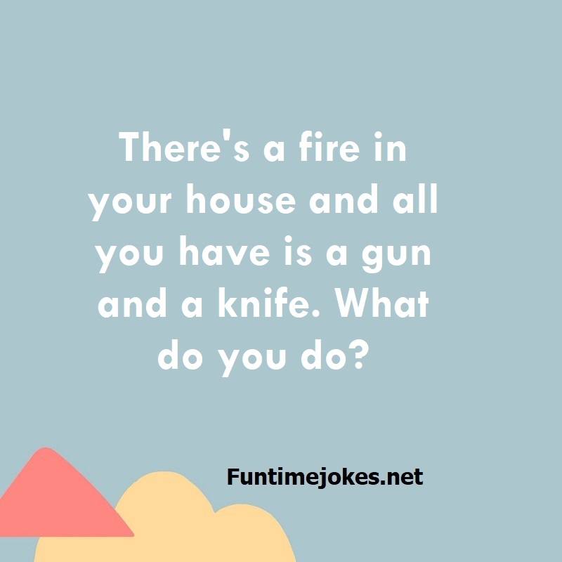 π Take the 15-Riddle Challenge (Win at 80%+)There's a fire in your house and all you have is a gun and a knife. What do you do?