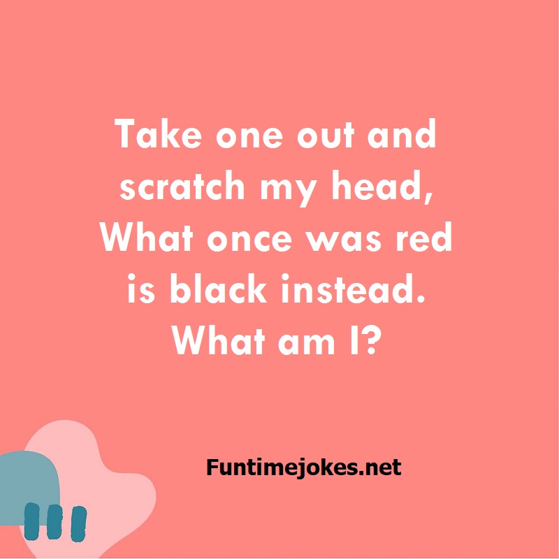 π Take the 15-Riddle Challenge (Win at 80%+)Take one out and scratch my head, What once was red is black instead. What am I?