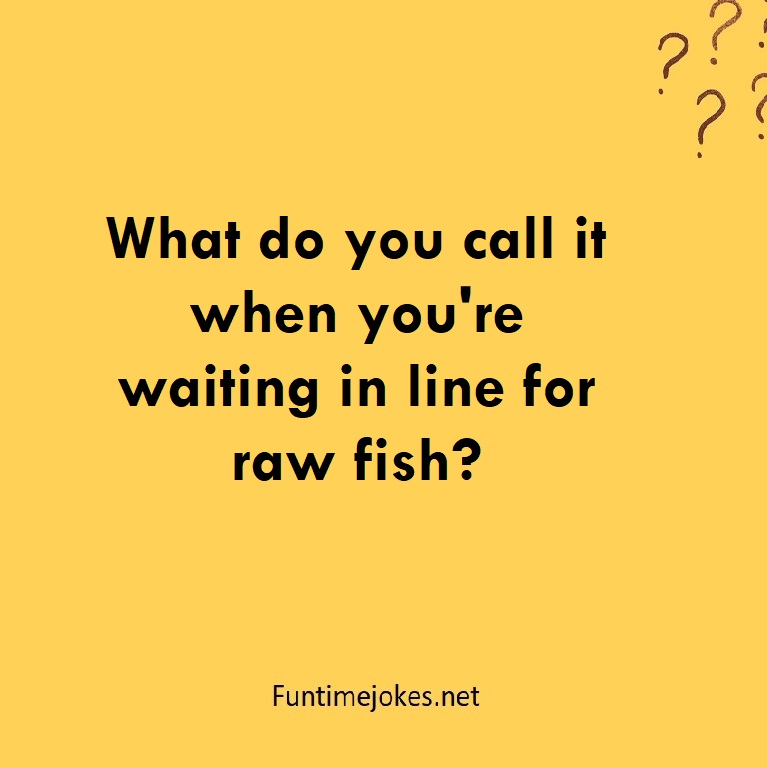 π Take the 15-Riddle Challenge (Win at 80%+)What do you call it when you're waiting in line for raw fish?