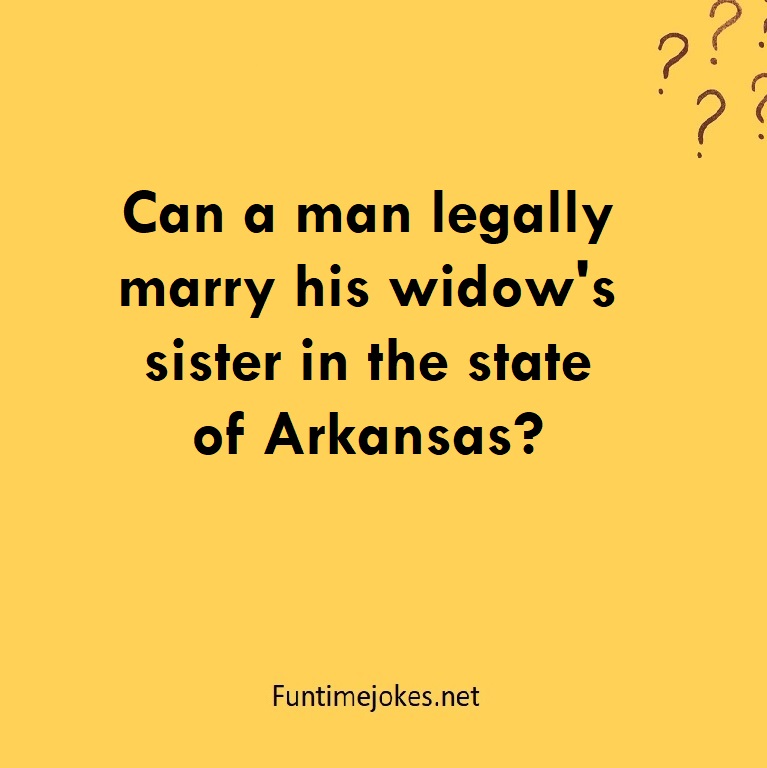 π Take the 15-Riddle Challenge (Win at 80%+)Can a man legally marry his widow's sister in the state of Arkansas?