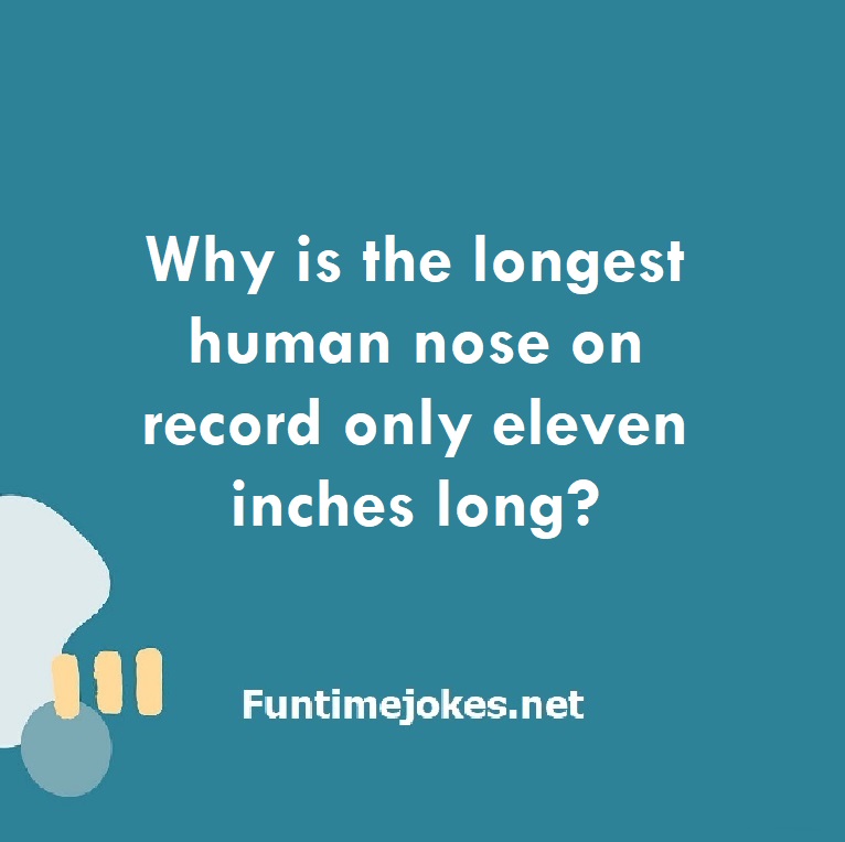 Why is the longest human nose on record only eleven inches long? is one of the best riddle of the day.We have best collections of riddles, You can see our best collection of Tricky Riddles with Answer