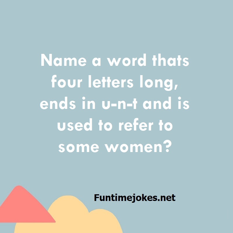 Name a word thats four letters long, ends in u-n-t and is used to refer to some women? is one of the best riddle of the day.We have best collections of riddles, You can see our best collection of Tricky Riddles with Answer