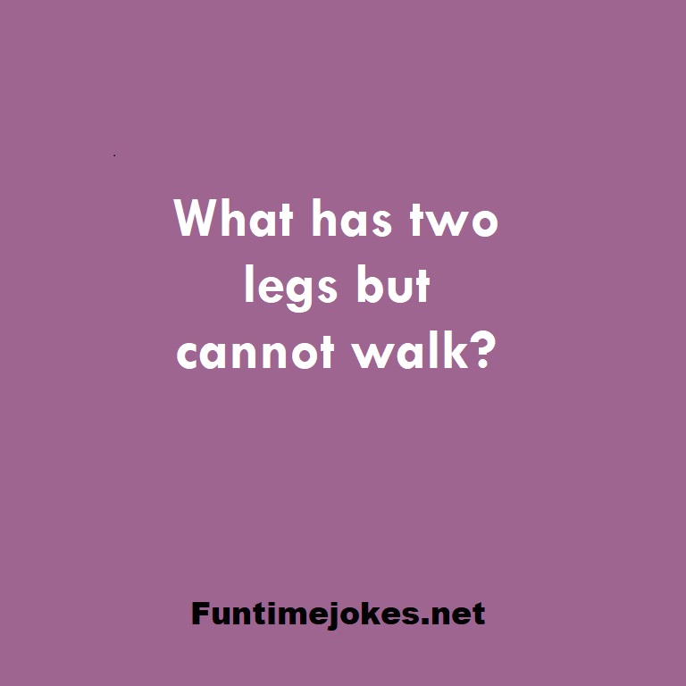 What has two legs but cannot walk? is one of the best riddle of the day.We have best collections of riddles, You can see our best collection of Tricky Riddles with Answer