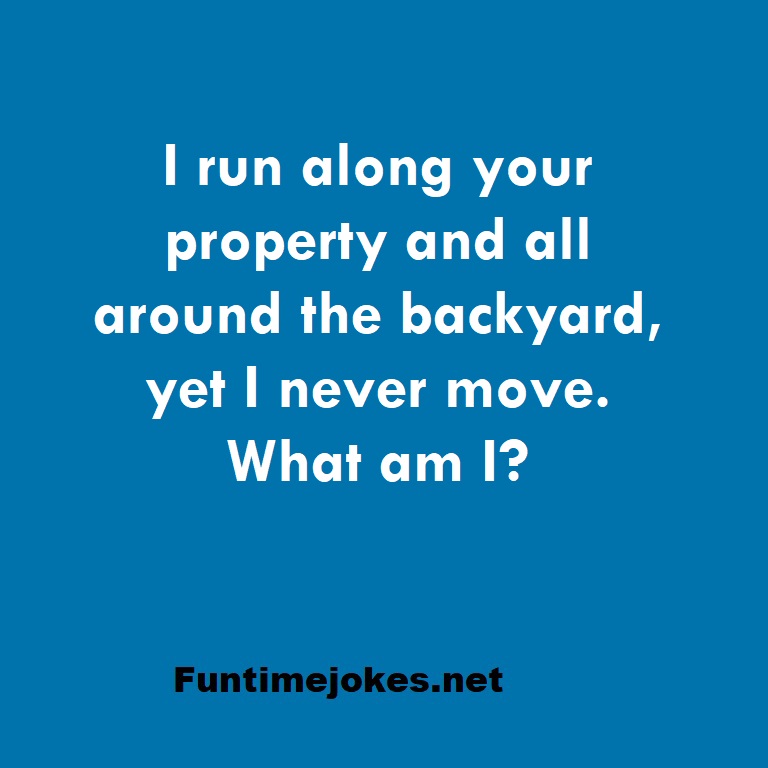 I run along your property and all around the backyard, yet I never move. What am I? is one of the best riddle of the day.We have best collections of riddles, You can see our best collection of Tricky Riddles with Answer