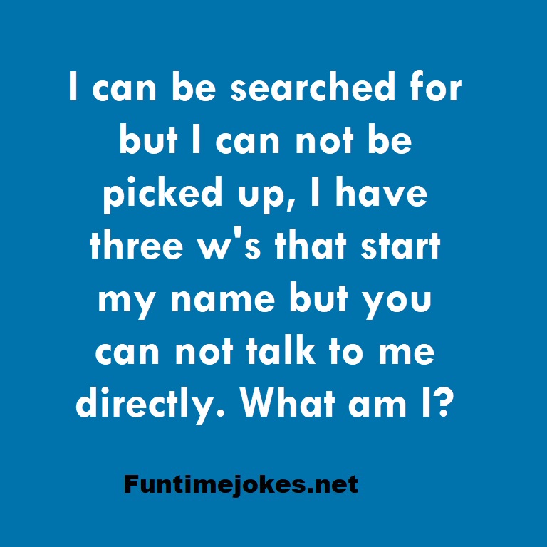 I can be searched for but I can not be picked up, I have three w's that start my name but you can not talk to me directly. What am I? is one of the best riddle of the day.We have best collections of riddles, You can see our best collection of Tricky Riddles with Answer