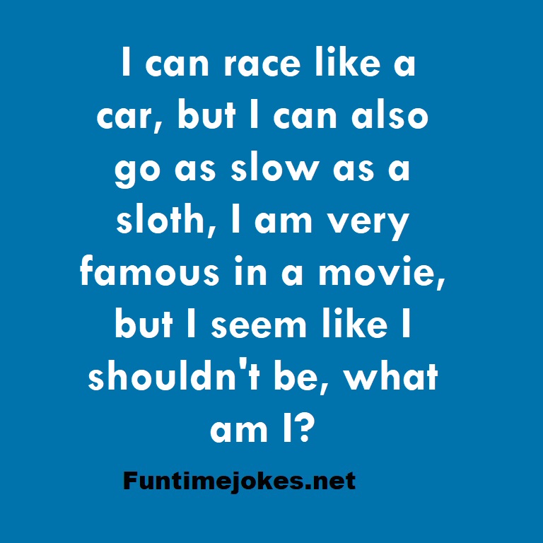 I can race like a car, but I can also go as slow as a sloth, I am very famous in a movie, but I seem like I shouldn't be, what am I? is one of the best riddle of the day.We have best collections of riddles, You can see our best collection of Tricky Riddles with Answer