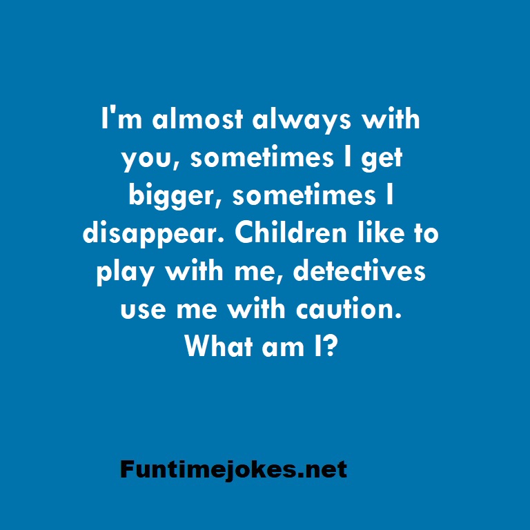 I'm almost always with you, sometimes I get bigger, sometimes I disappear. Children like to play with me, detectives use me with caution. What am I? is one of the best riddle of the day.We have best collections of riddles, You can see our best collection of Tricky Riddles with Answer