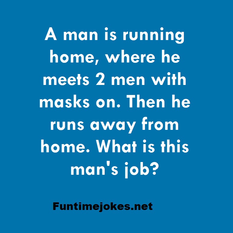 A man is running home, where he meets 2 men with masks on. Then he runs away from home. What is this man's job? is one of the best riddle of the day.We have best collections of riddles, You can see our best collection of Tricky Riddles with Answer