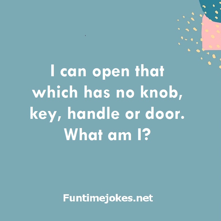 I can open that which has no knob, key, handle or door. What am I? is one of the best riddle of the day.We have best collections of riddles, You can see our best collection of Tricky Riddles with Answer