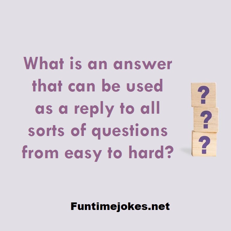 What is an answer that can be used as a reply to all sorts of questions from easy to hard? is one of the best riddle of the day.We have best collections of riddles, You can see our best collection of Tricky Riddles with Answer