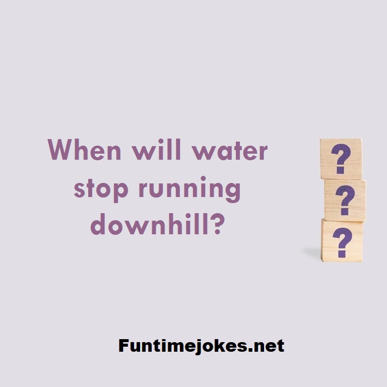 When will water stop running downhill? is one of the best riddle of the day.We have best collections of riddles, You can see our best collection of Tricky Riddles with Answer