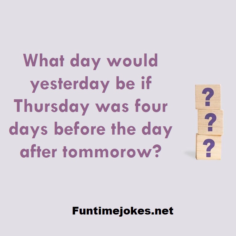 What day would yesterday be if Thursday was four days before the day after tommorow? is one of the best riddle of the day.We have best collections of riddles, You can see our best collection of Tricky Riddles with Answer