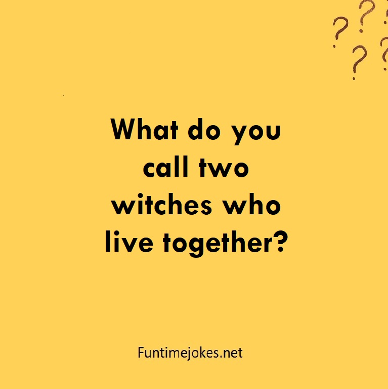 What do you call two witches who live together? is one of the best riddle of the day.We have best collections of riddles, You can see our best collection of Tricky Riddles with Answer