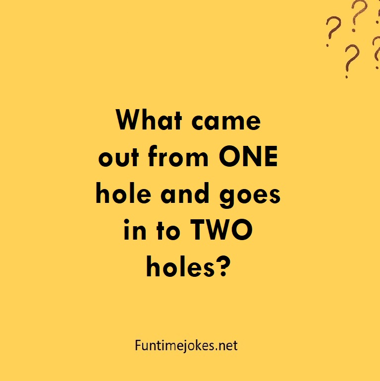 What came out from ONE hole and goes in to TWO holes? is one of the best riddle of the day.We have best collections of riddles, You can see our best collection of Tricky Riddles with Answer