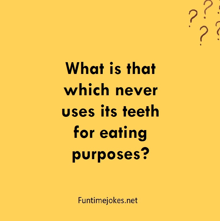 What is that which never uses its teeth for eating purposes? is one of the best riddle of the day.We have best collections of riddles, You can see our best collection of Tricky Riddles with Answer