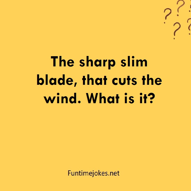 The sharp slim blade, that cuts the wind. What is it? is one of the best riddle of the day.We have best collections of riddles, You can see our best collection of Tricky Riddles with Answer