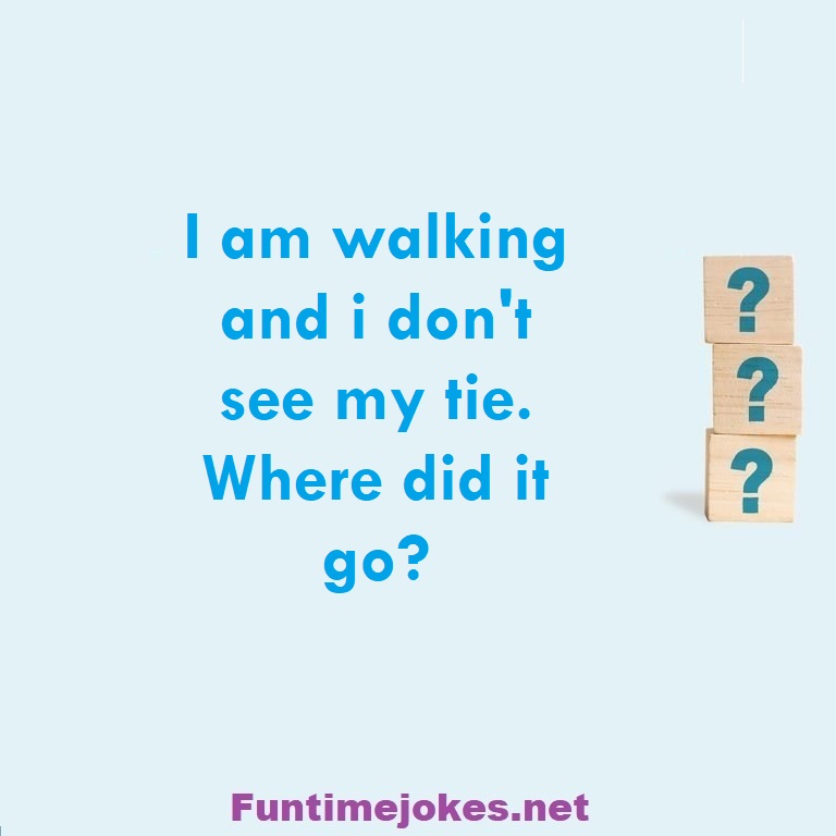 I am walking and i don't see my tie. Where did it go? is one of the best riddle of the day.We have best collections of riddles, You can see our best collection of Tricky Riddles with Answer