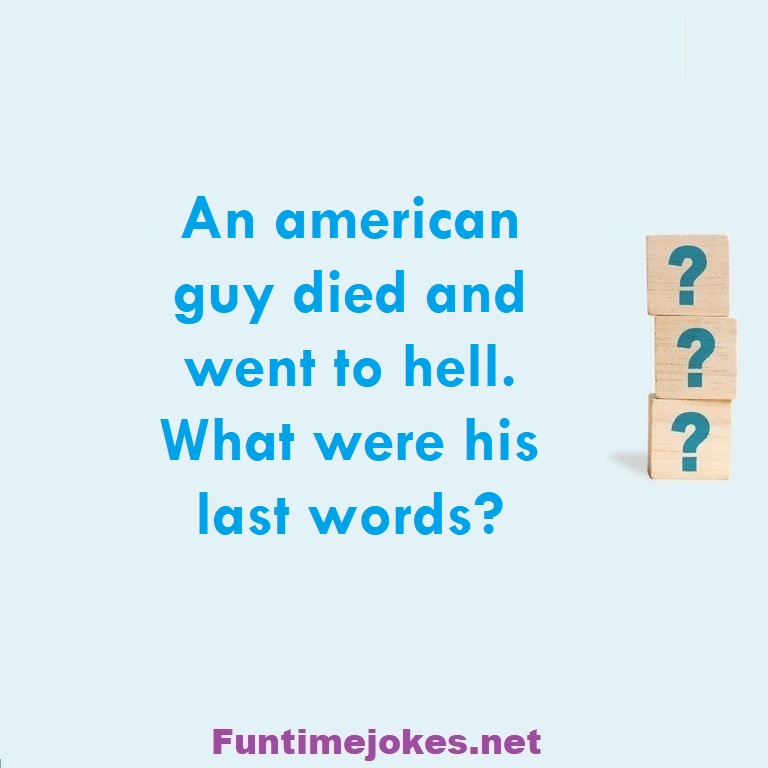 An american guy died and went to hell. What were his last words? is one of the best riddle of the day.We have best collections of riddles, You can see our best collection of Tricky Riddles with Answer