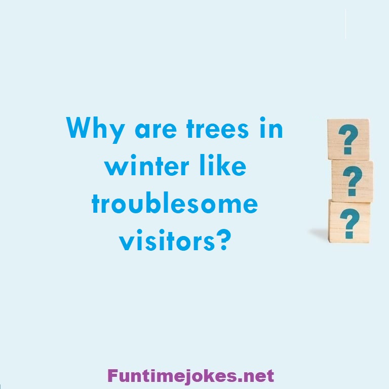 Why are trees in winter like troublesome visitors? is one of the best riddle of the day.We have best collections of riddles, You can see our best collection of Tricky Riddles with Answer
