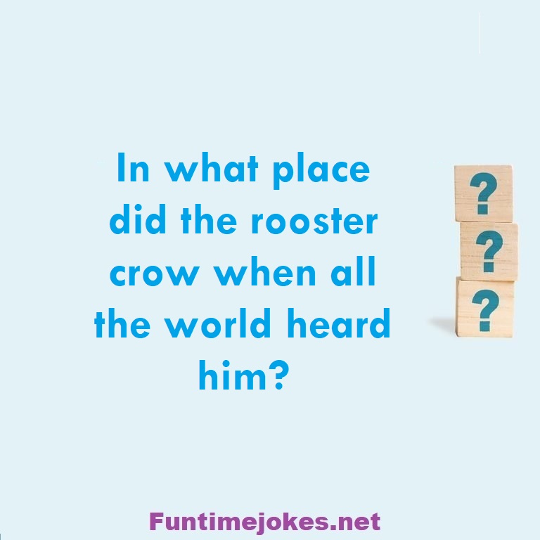In what place did the rooster crow when all the world heard him? is one of the best riddle of the day.We have best collections of riddles, You can see our best collection of Tricky Riddles with Answer