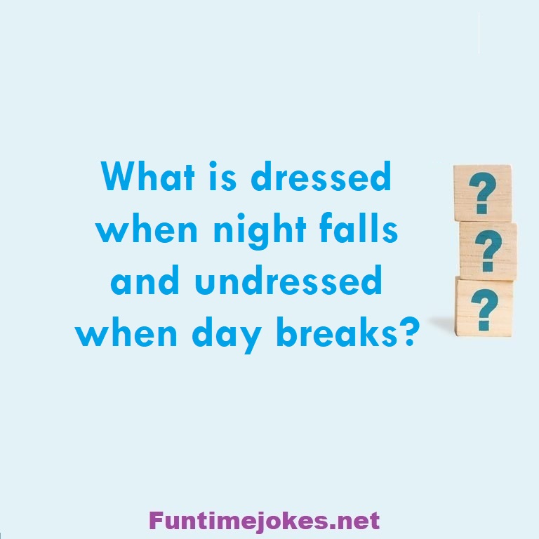 What is dressed when night falls and undressed when day breaks? is one of the best riddle of the day.We have best collections of riddles, You can see our best collection of Tricky Riddles with Answer