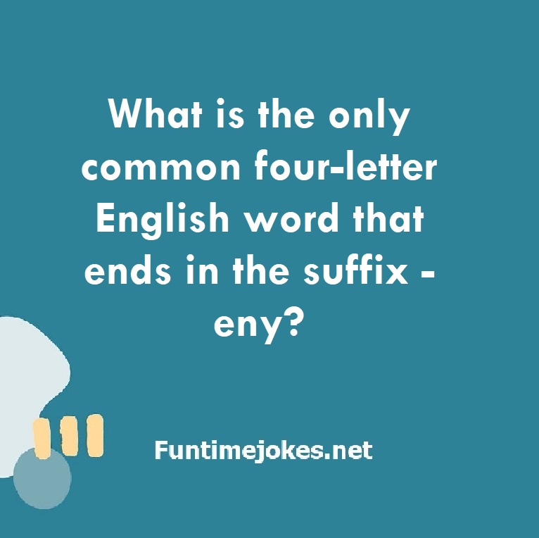 What is the only common four-letter English word that ends in the suffix -eny? is one of the best riddle of the day.We have best collections of riddles, You can see our best collection of Tricky Riddles with Answer