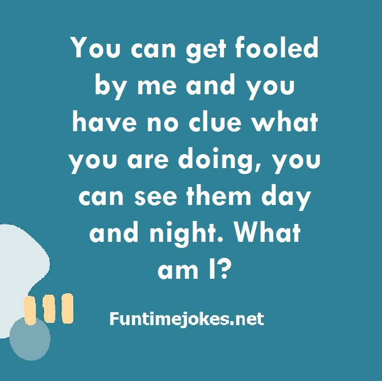 You can get fooled by me and you have no clue what you are doing, you can see them day and night. What am I? is one of the best riddle of the day.We have best collections of riddles, You can see our best collection of Tricky Riddles with Answer