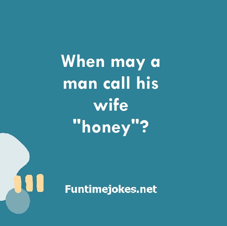 When may a man call his wife "honey"? is one of the best riddle of the day.We have best collections of riddles, You can see our best collection of Tricky Riddles with Answer