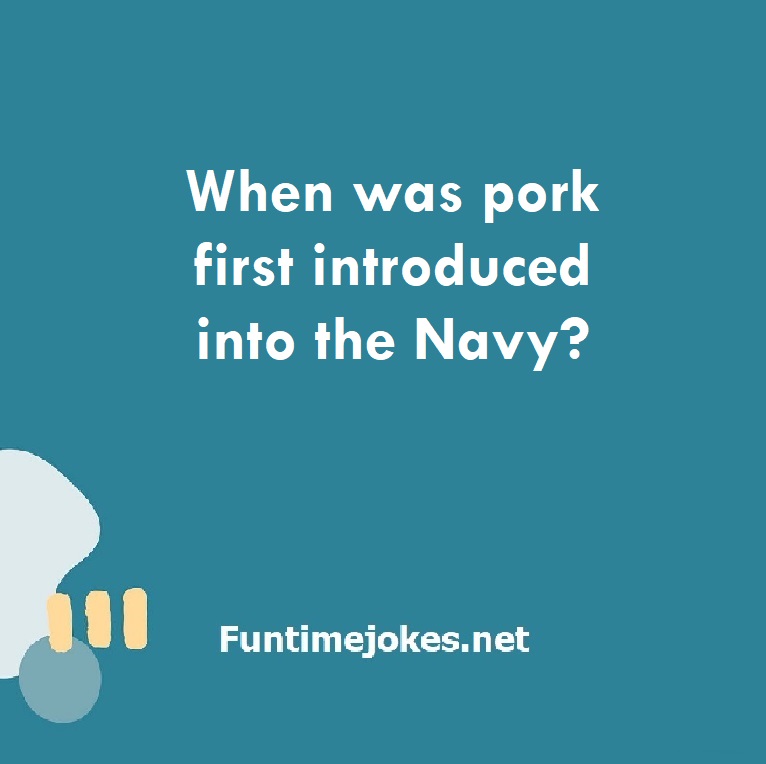 When was pork first introduced into the Navy? is one of the best riddle of the day.We have best collections of riddles, You can see our best collection of Tricky Riddles with Answer