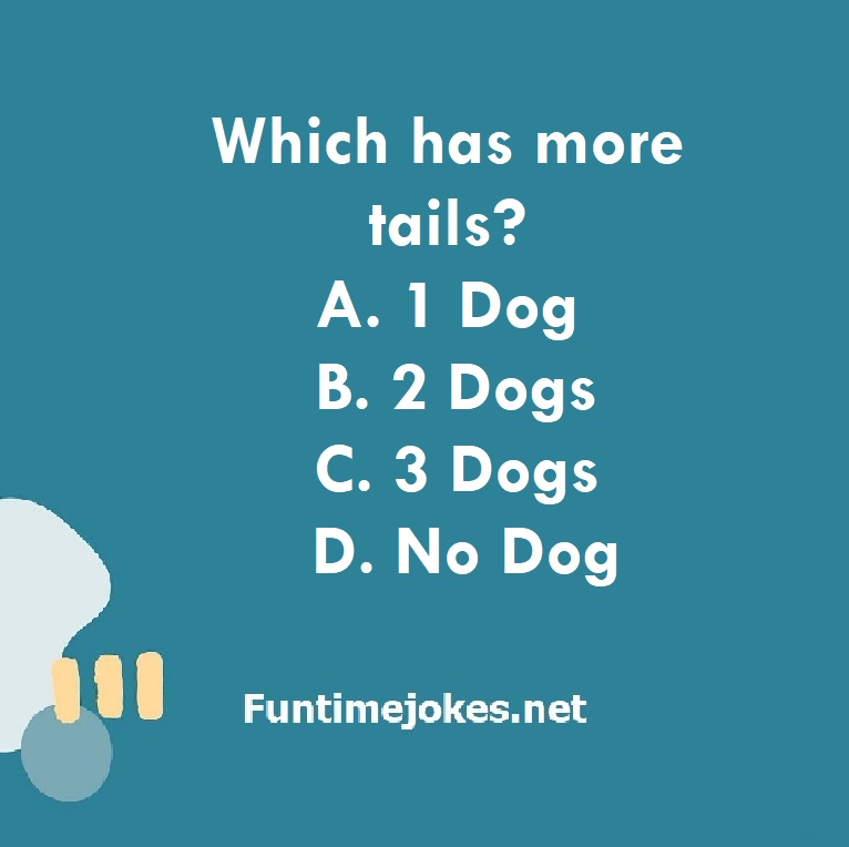 Which has more tails? A. 1 Dog B. 2 Dogs C. 3 Dogs D. No Dog is one of the best riddle of the day.We have best collections of riddles, You can see our best collection of Tricky Riddles with Answer