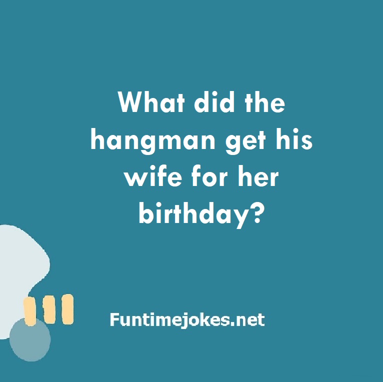 What did the hangman get his wife for her birthday? is one of the best riddle of the day.We have best collections of riddles, You can see our best collection of Tricky Riddles with Answer