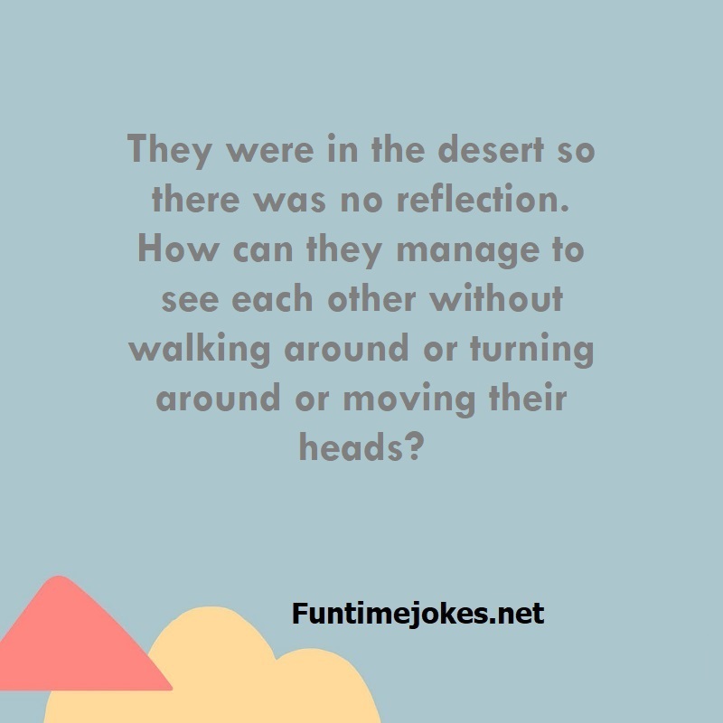 Two camels were facing in opposite directions. One was facing due East and one was facing due West. They were in the desert so there was no reflection. How can they manage to see each other without walking around or turning around or moving their heads? is one of the best riddle of the day.We have best collections of riddles, You can see our best collection of Tricky Riddles with Answer
