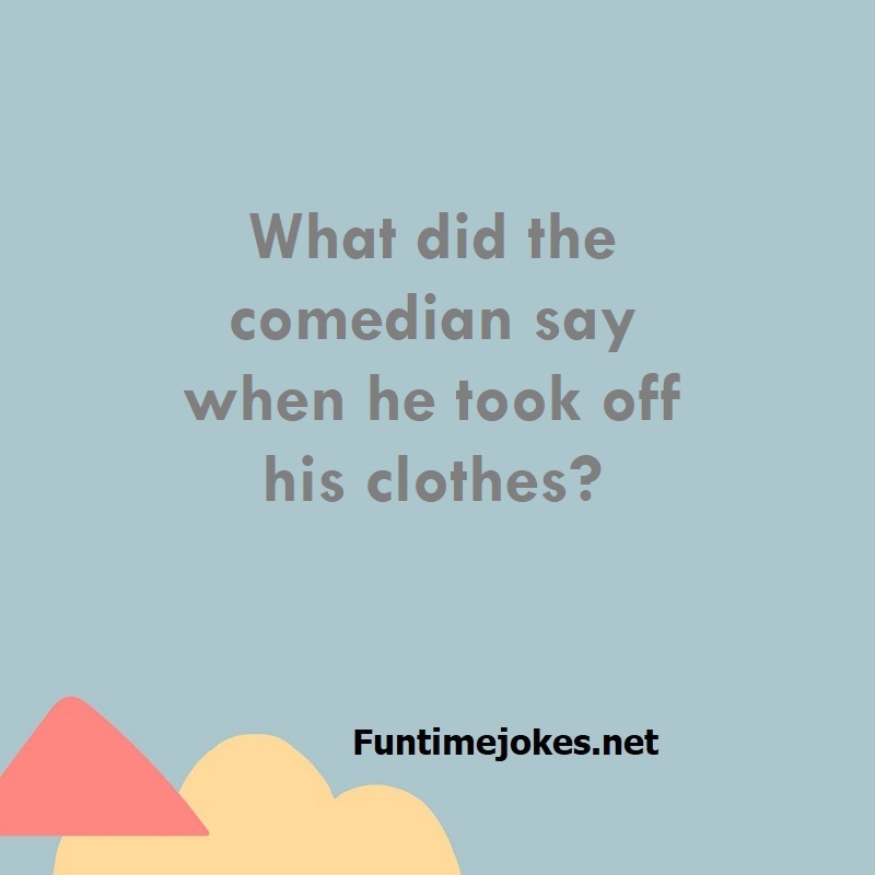 What did the comedian say when he took off his clothes? is one of the best riddle of the day.We have best collections of riddles, You can see our best collection of Tricky Riddles with Answer