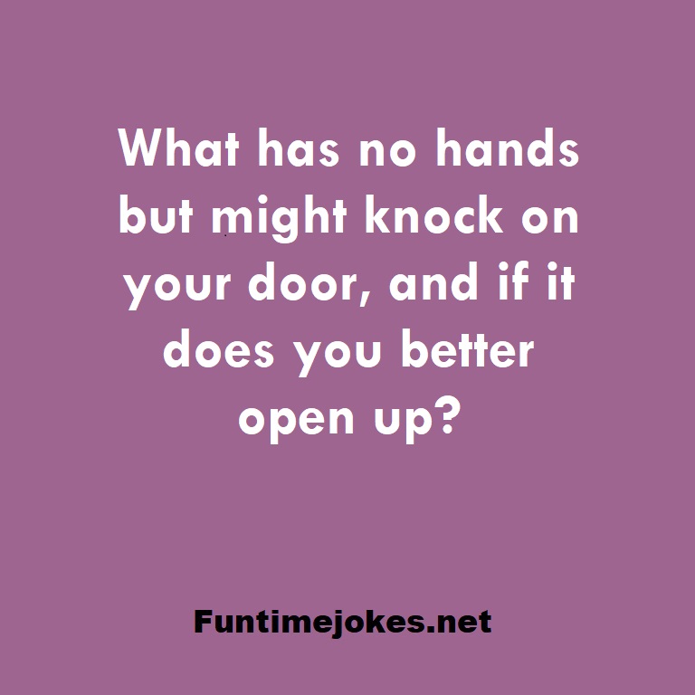 What has no hands but might knock on your door, and if it does you better open up? is one of the best riddle of the day.We have best collections of riddles, You can see our best collection of Tricky Riddles with Answer