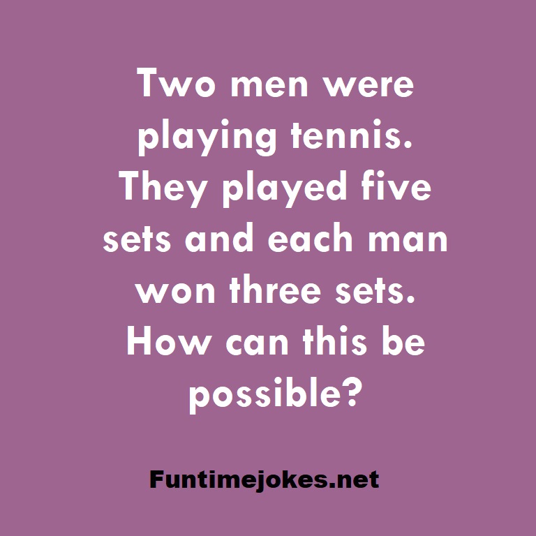Two men were playing tennis. They played five sets and each man won three sets. How can this be possible? is one of the best riddle of the day.We have best collections of riddles, You can see our best collection of Tricky Riddles with Answer